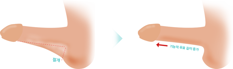갈퀴음낭이란 음낭피부가 성기에 오리발 갈퀴처럼 붙어있는 상태를 말하며, 이로 인해 발기시 성기 길이의 기능적 단축의 원인이 됩니다. 갈퀴음낭은 선천적으로 발달한 경우와 잘못된 포경 수술로 인해 후천적으로 발생된 경우로 나뉘는데 갈퀴음낭 제거수술은 음경의 기능적 유효길이를 증가시키고 음경길이 연장효과까지 기대할 수 있는 안전한 수술방법입니다.