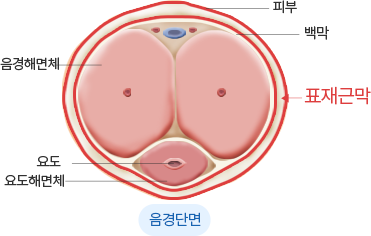 표재근막은 피부 바로 아랫쪽에 위치해 성기와 피부에 혈류를 공급하며 발기시 신축성을 담당하는 층입니다.